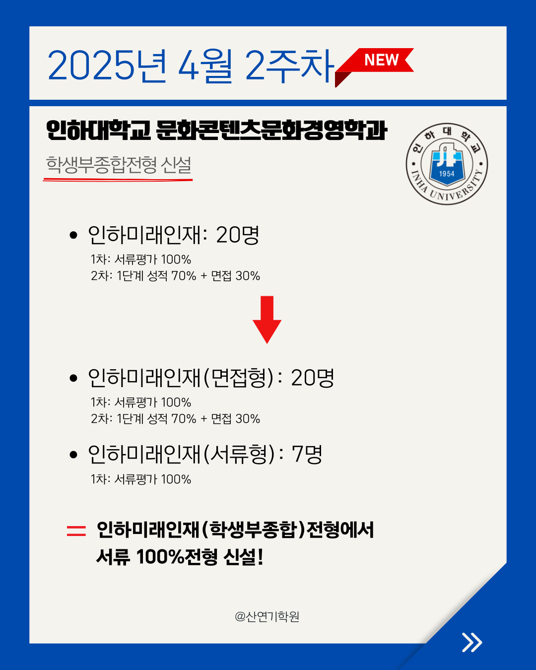 2026학년도 4월 2주차 입시속보 (인하대, 한세대, 호원대)