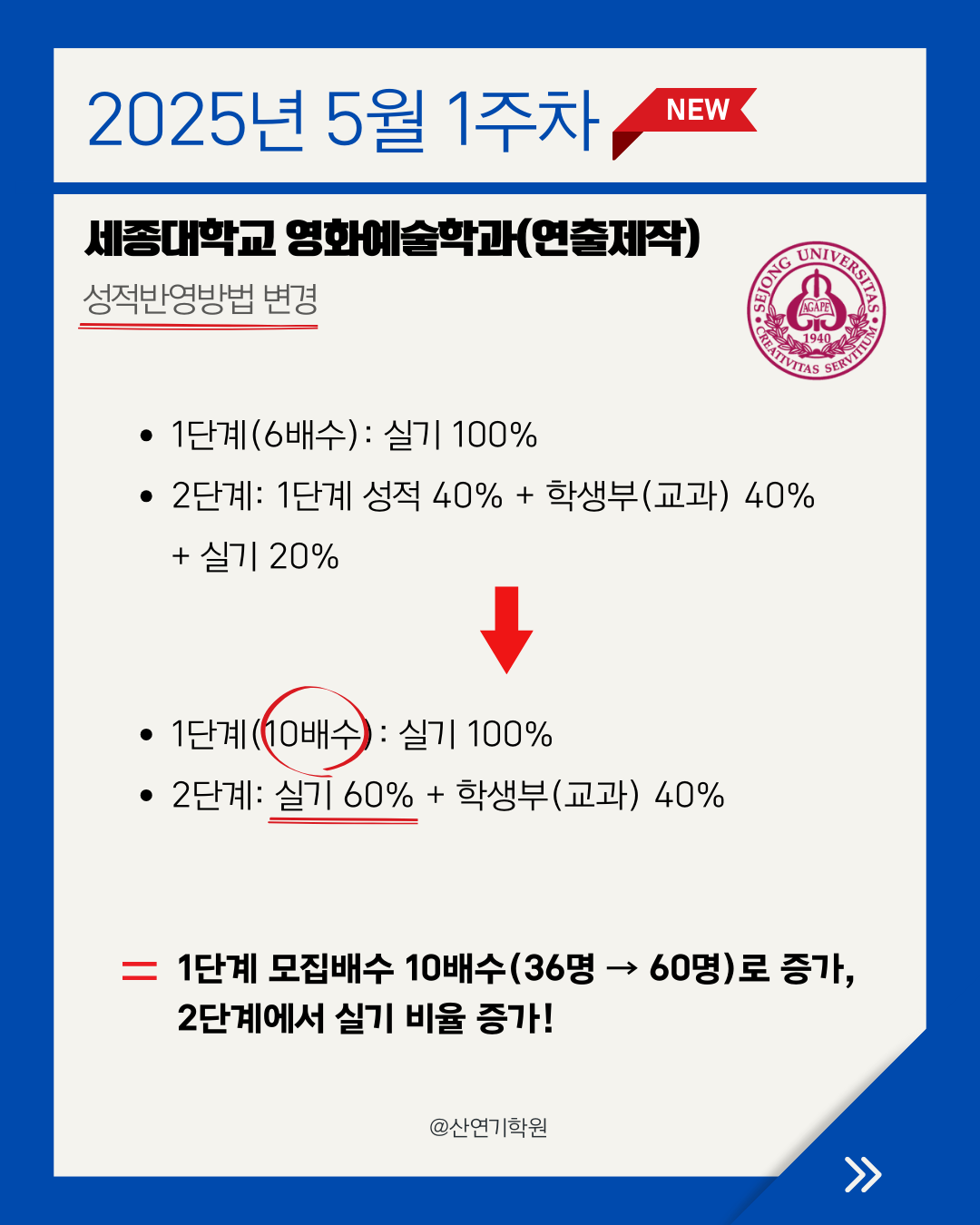 2026학년도 5월 1주차 입시속보 (세종대/성결대)