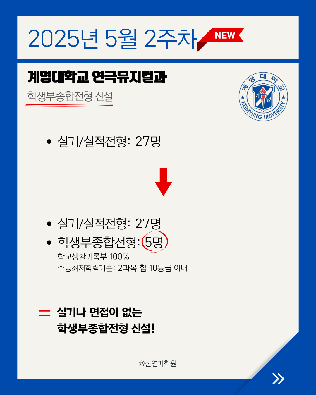 2026학년도 5월 2주차 입시속보 (경기대/계명대/대진대)