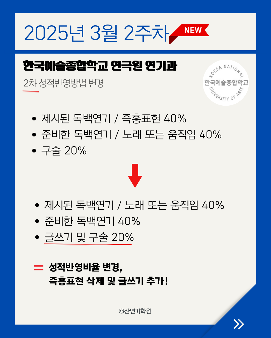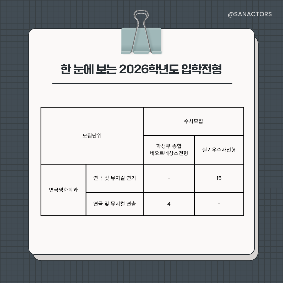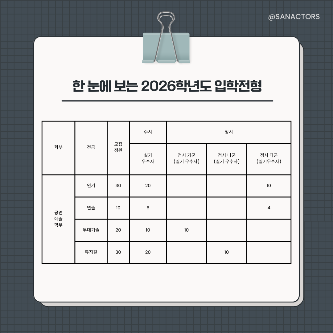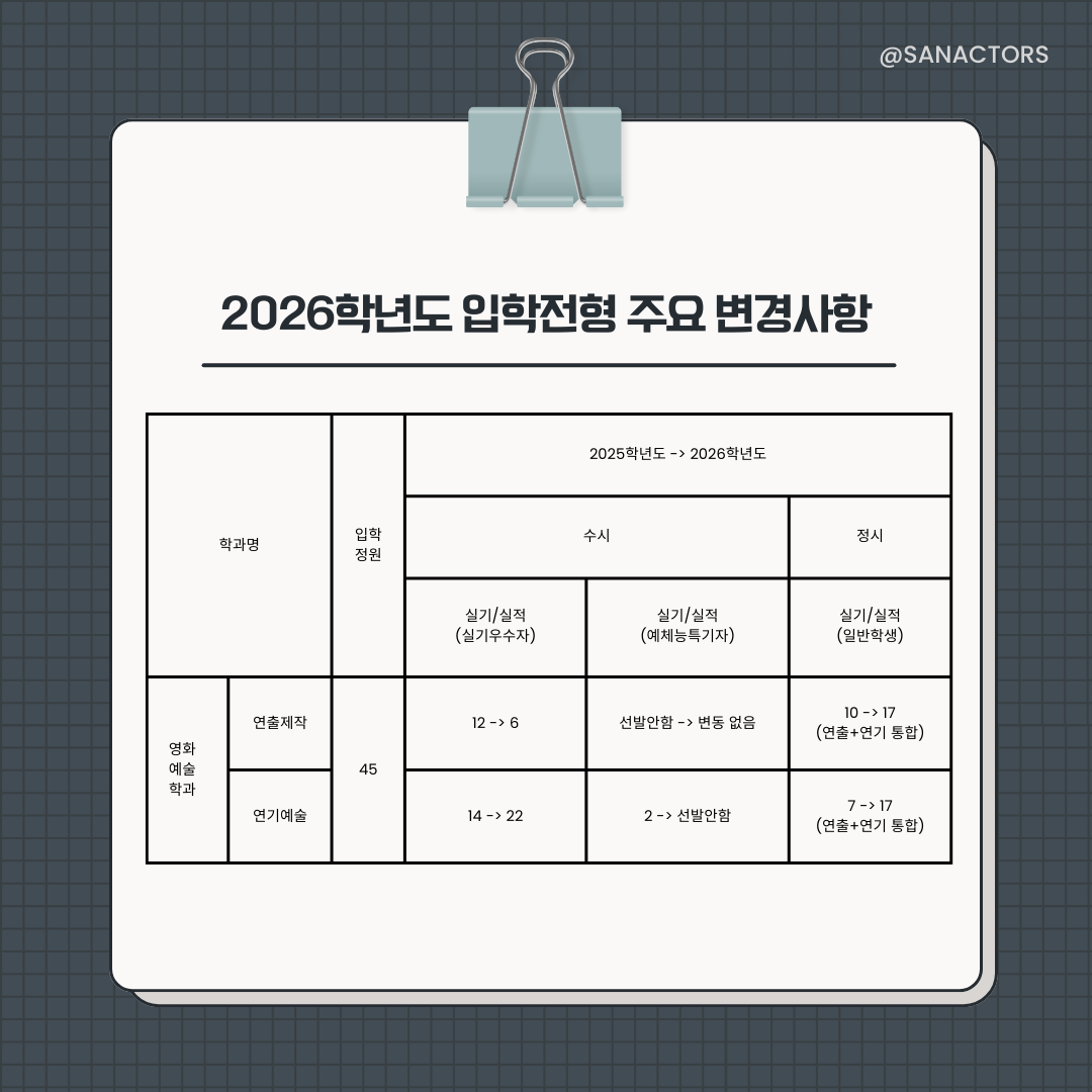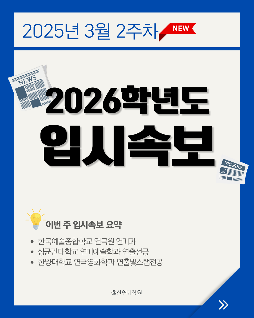 2026학년도 4월 1주차 입시속보 (한예종 연기과/연출과, 동덕여대)