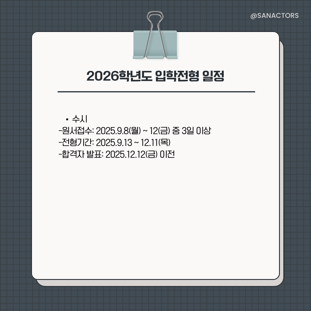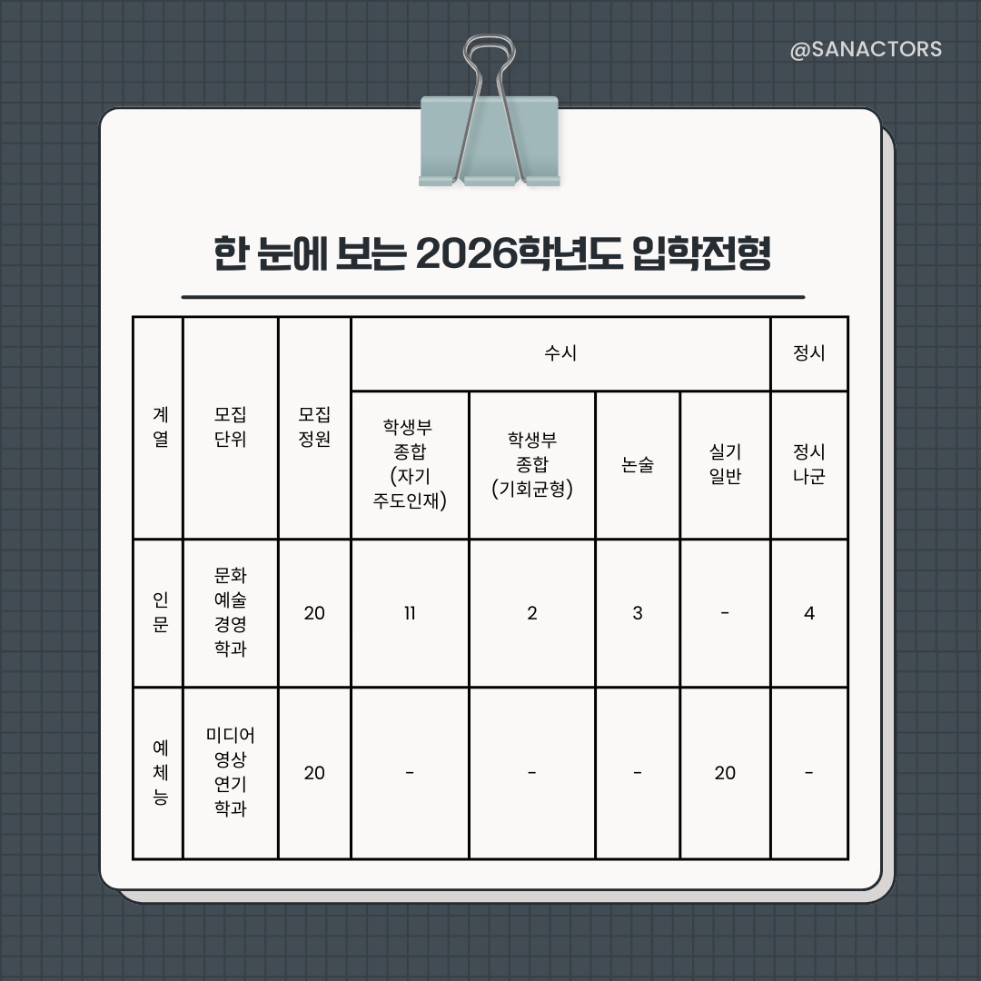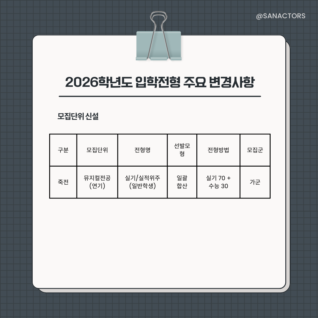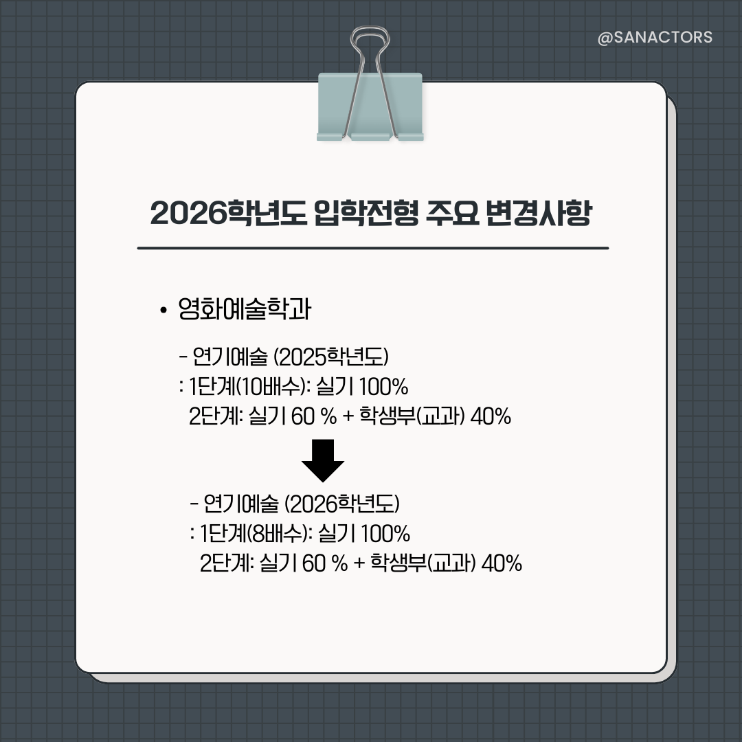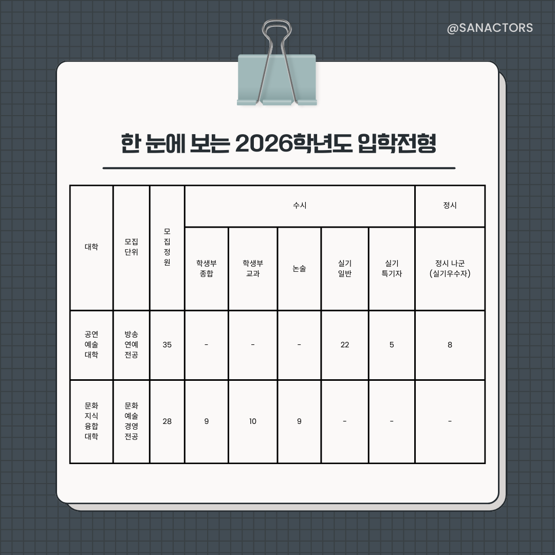 2026학년도 4월 1주차 입시속보 (한예종 연기과/연출과, 동덕여대)