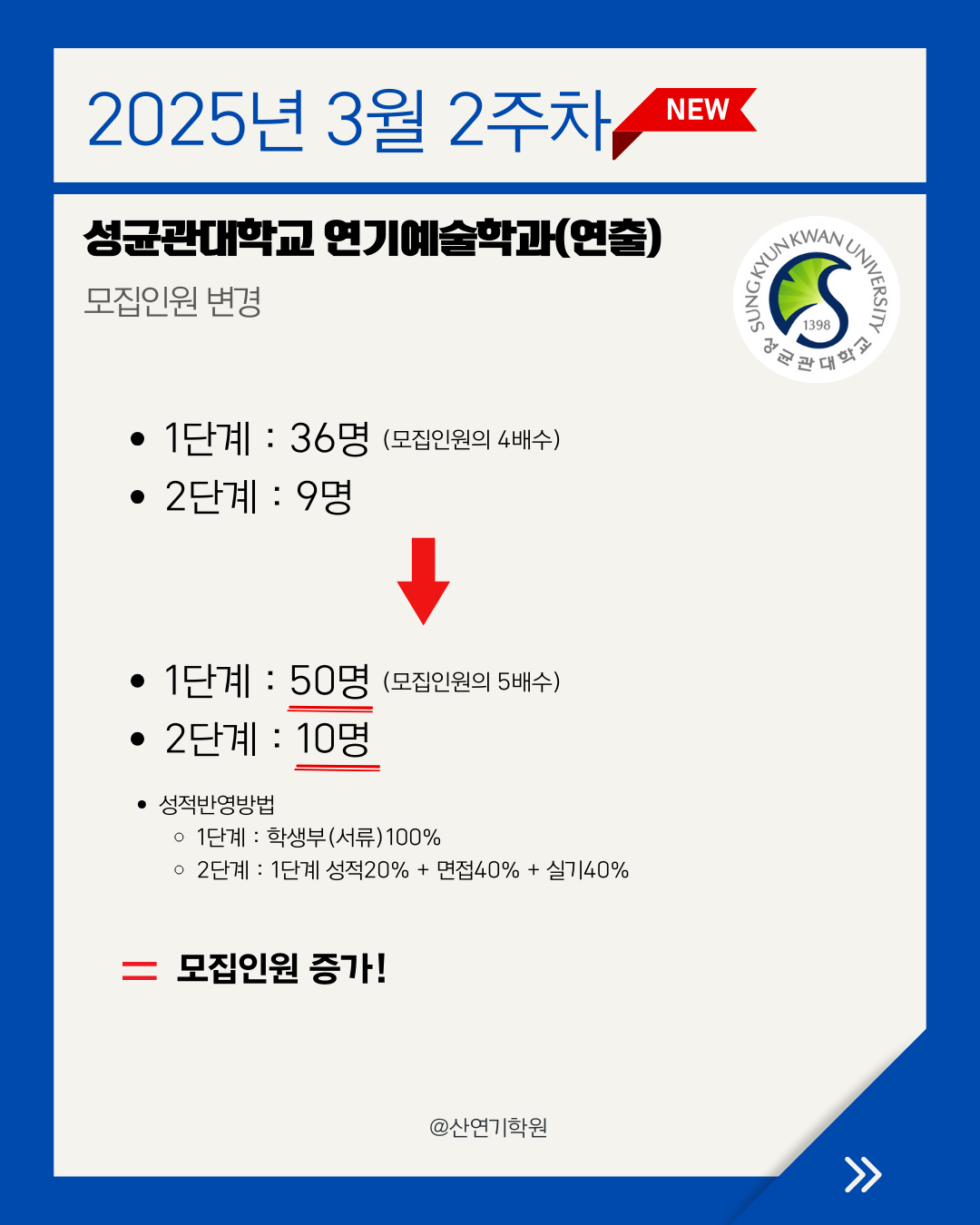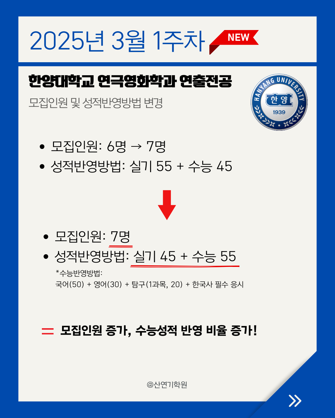 2026학년도 3월 2주차 입시속보 (한예종, 성균관대, 한양대)