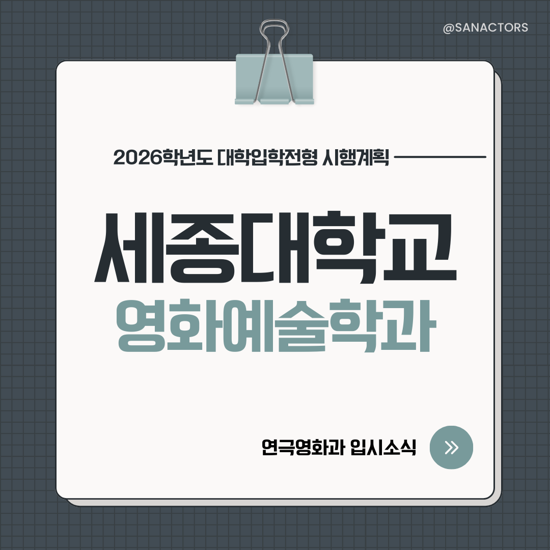 2026학년도 세종대학교 영화예술학과 입학전형 시행계획