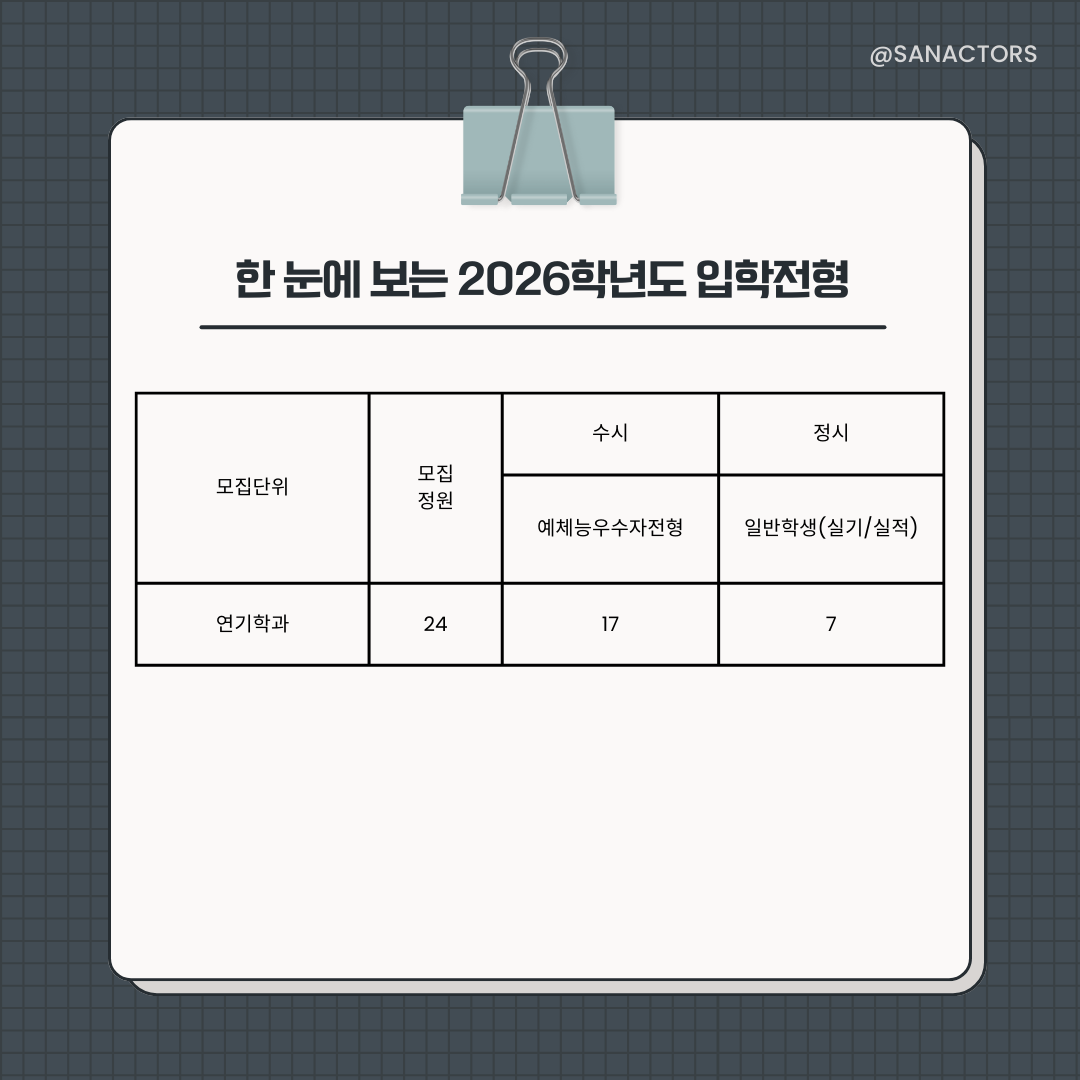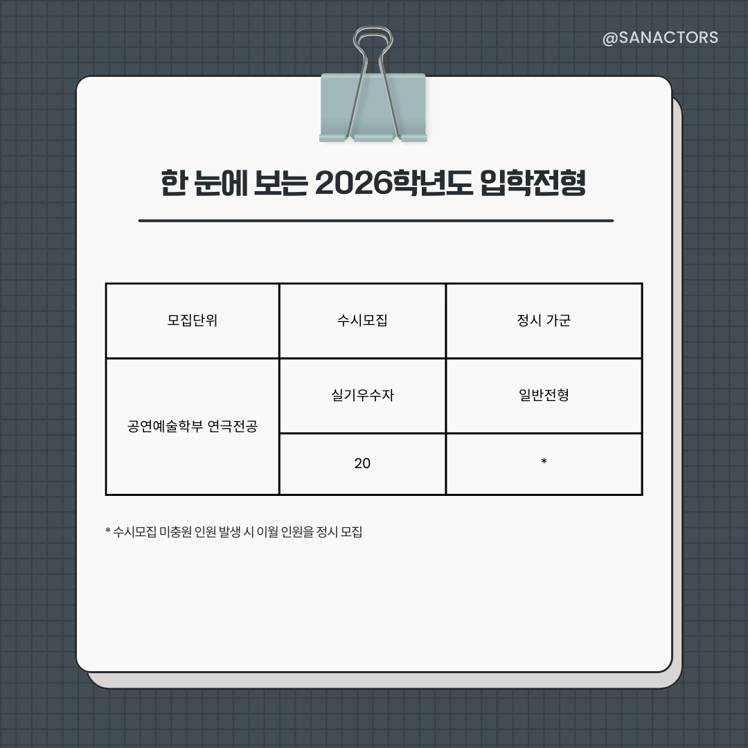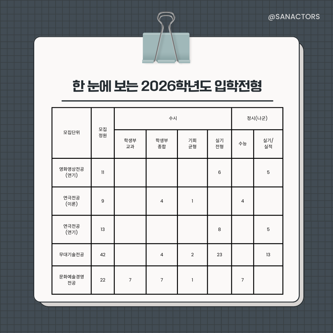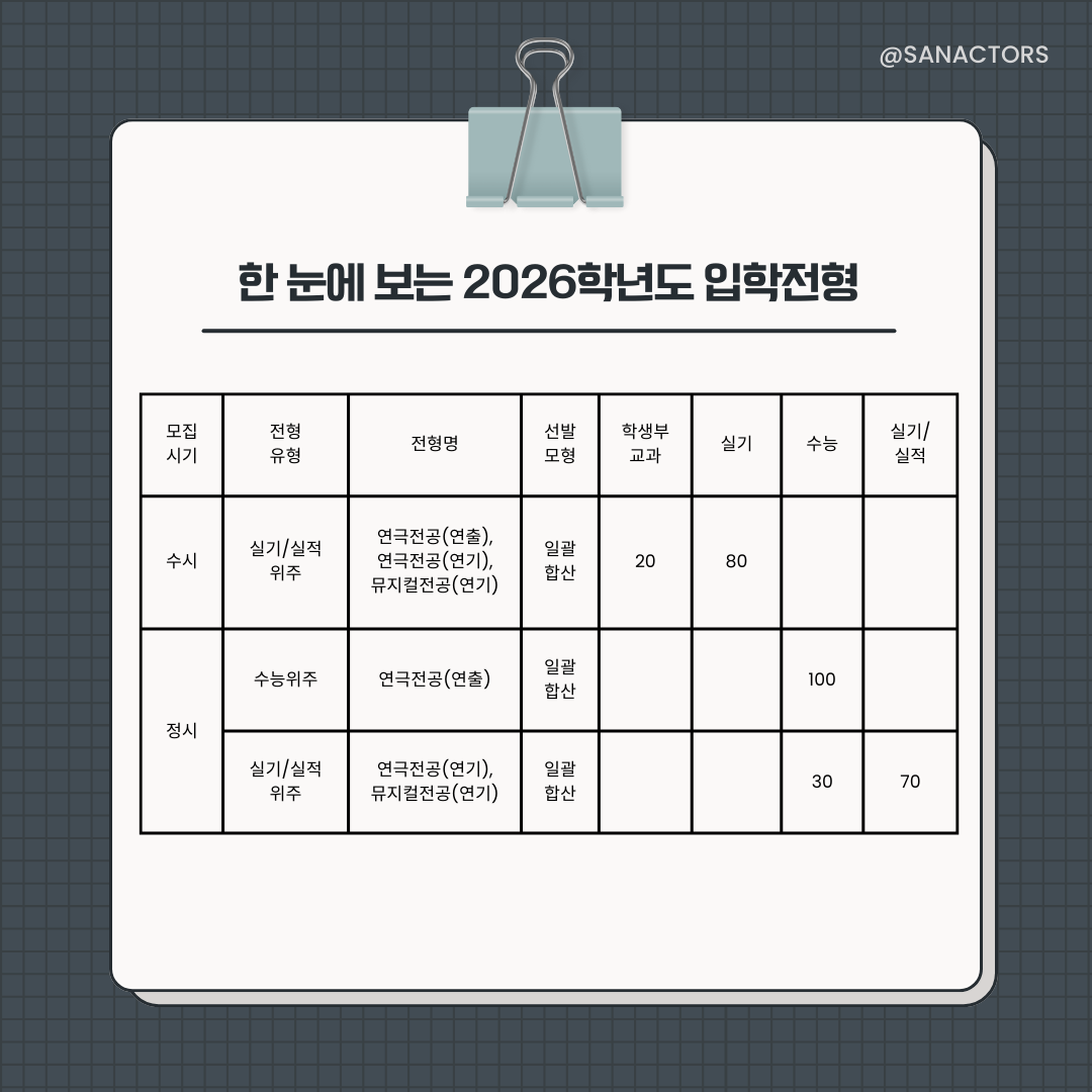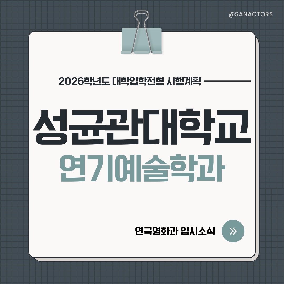 2026학년도 성균관대학교 연기예술학과 입학전형 시행계획