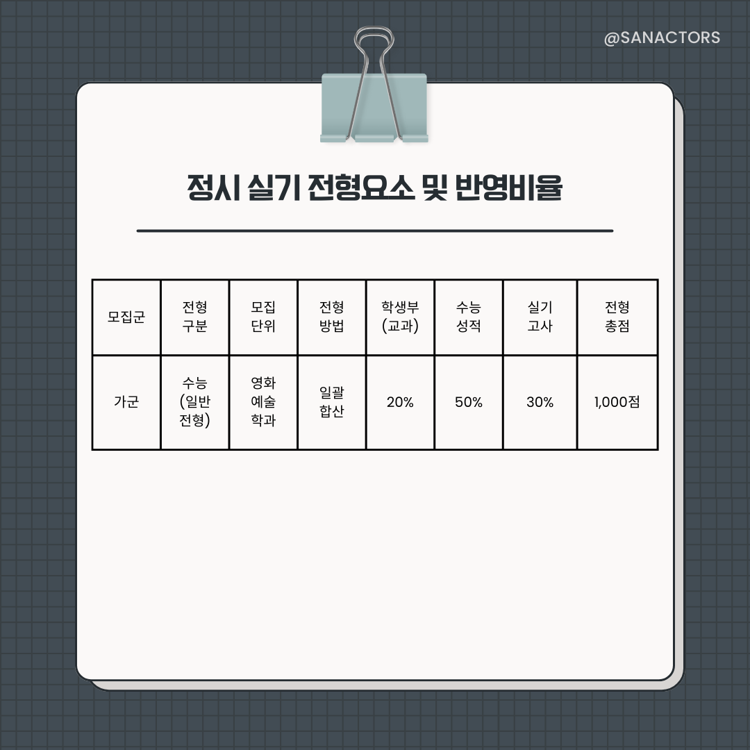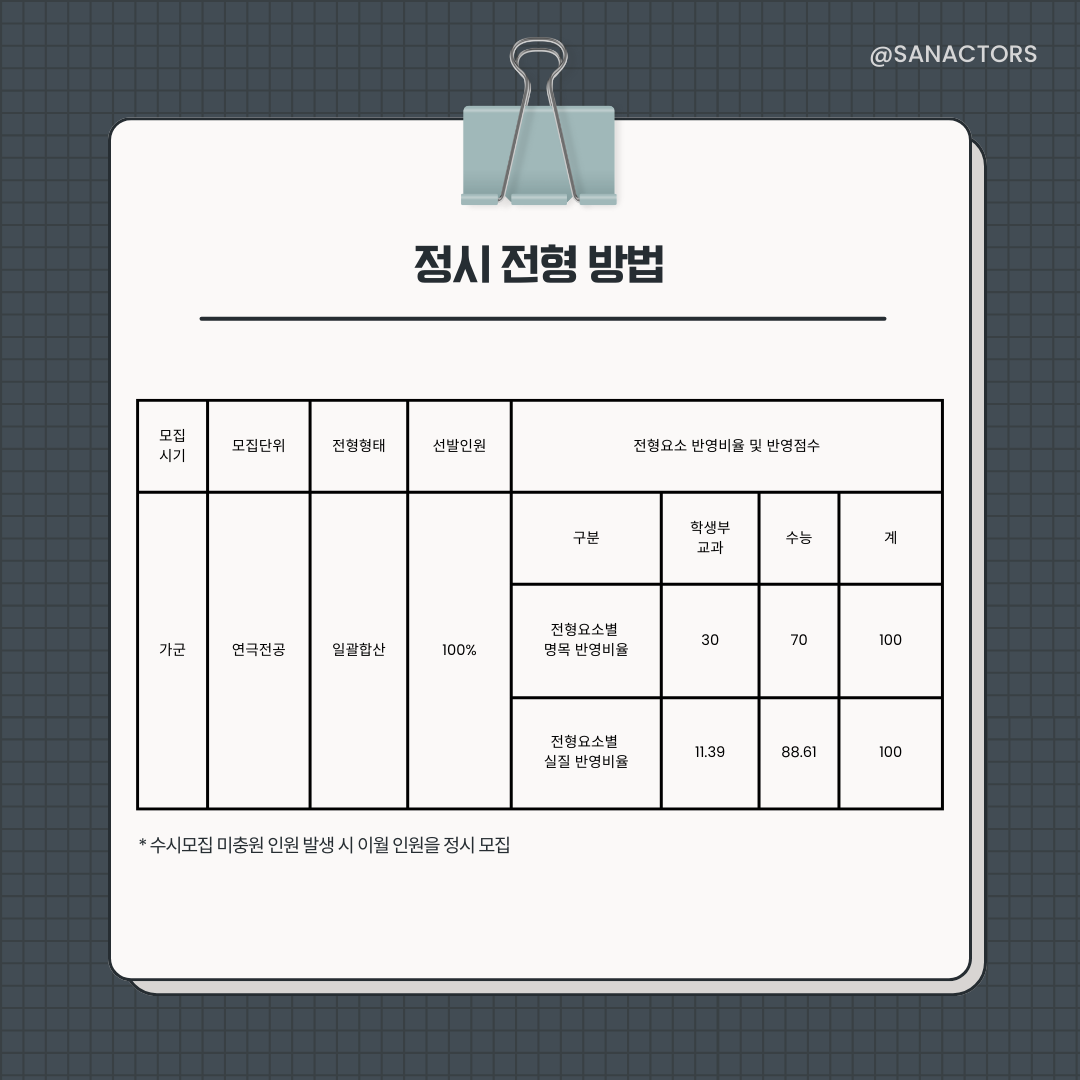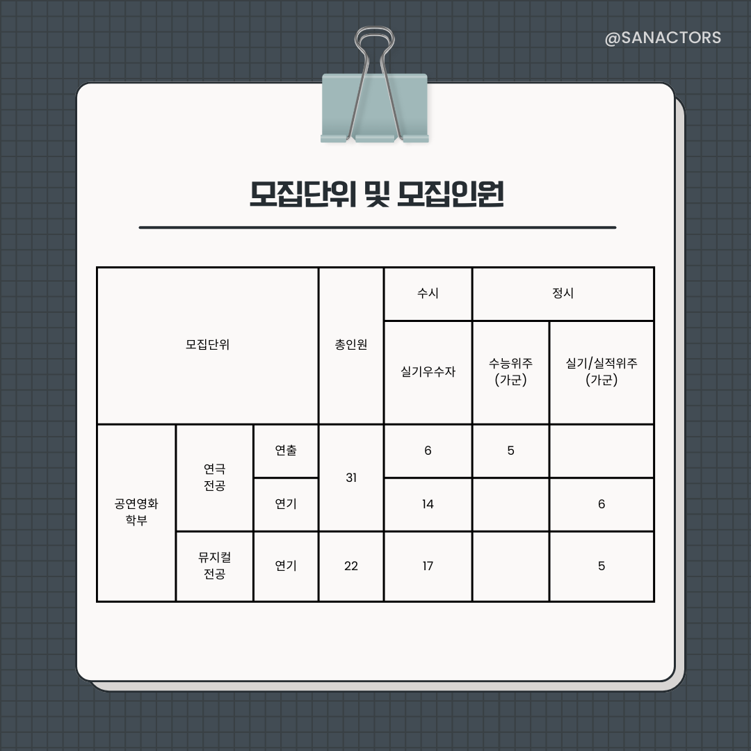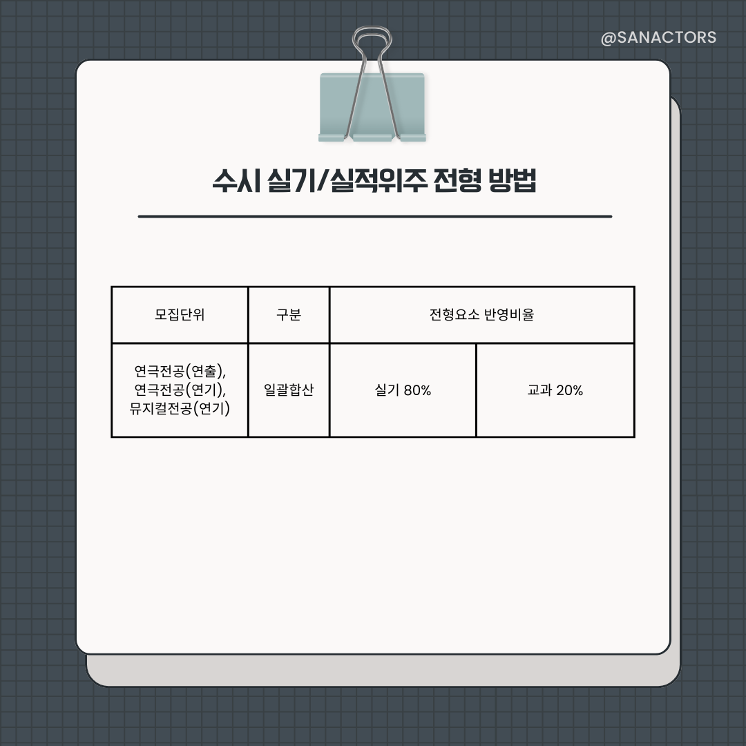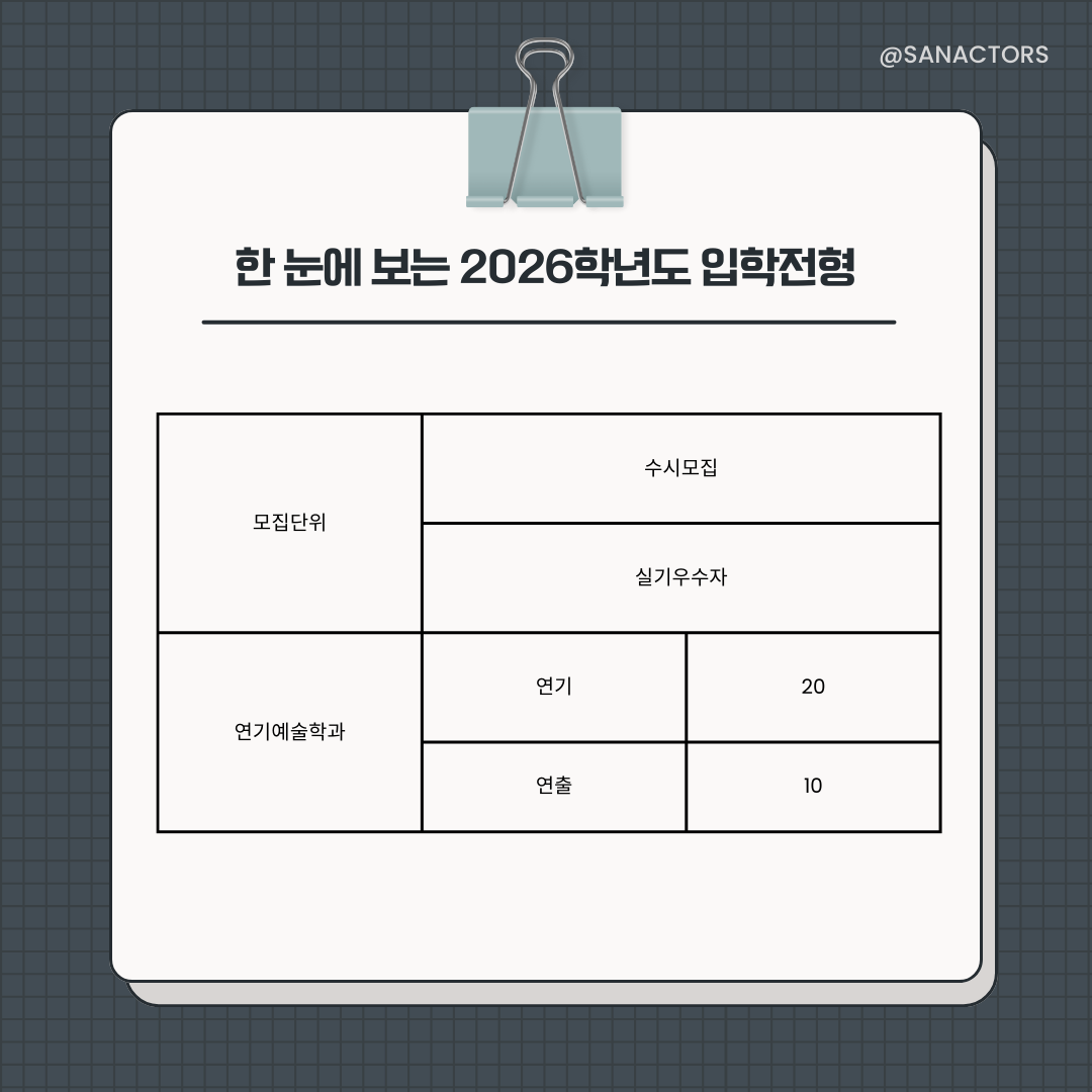 2026학년도 성균관대학교 연기예술학과 입학전형 시행계획