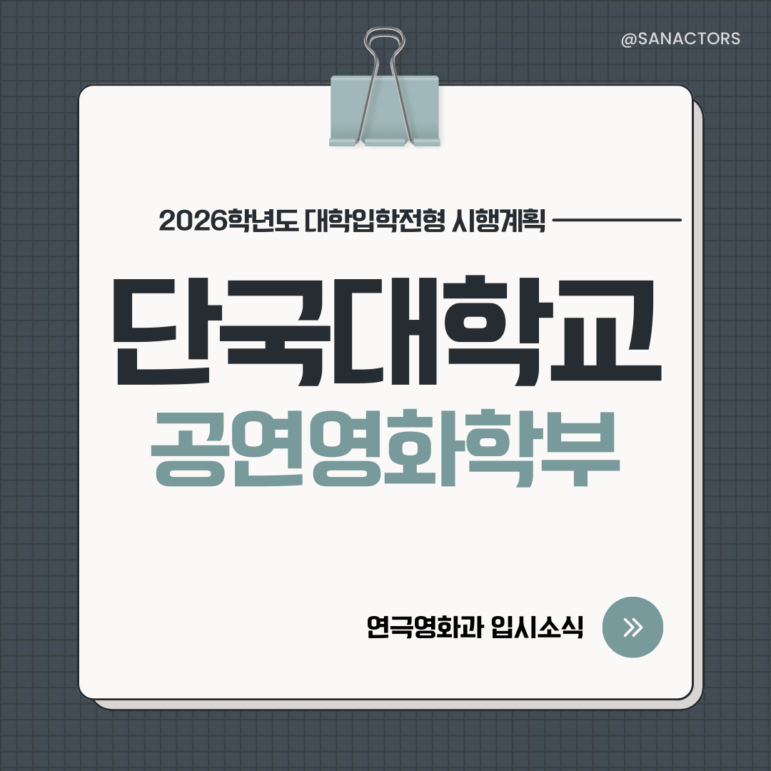 2026학년도 단국대학교 공연영화학부 입학전형 시행계획