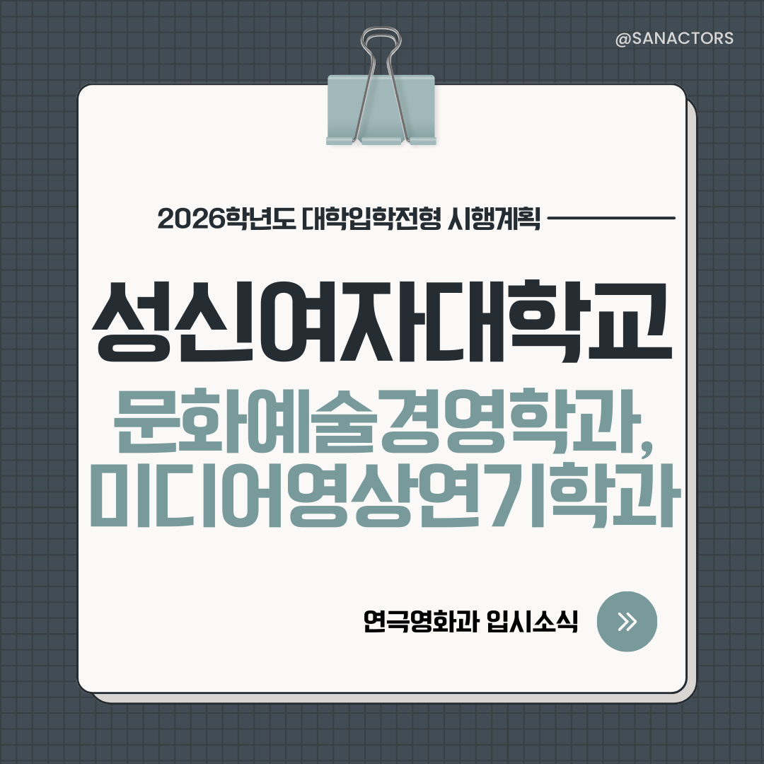 2026학년도 성신여자대학교 문화예술경영학과, 미디어영상연기학과 입학전형 시행계획