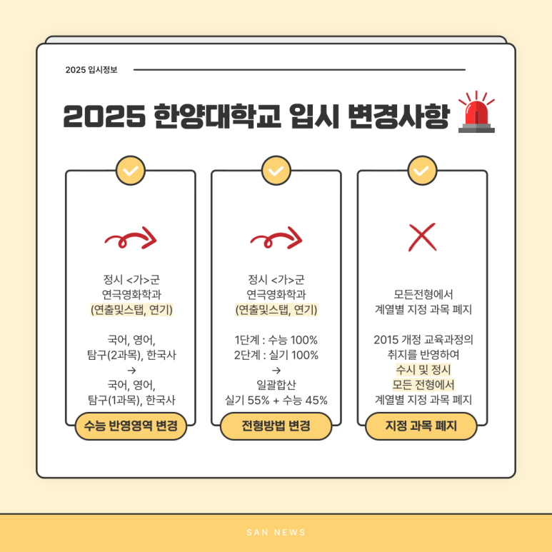 2025학년도 한양대학교 대학입학전형 시행계획이 발표되었습니다!