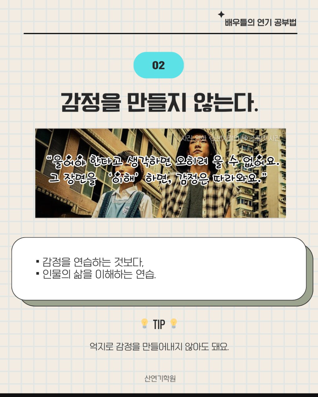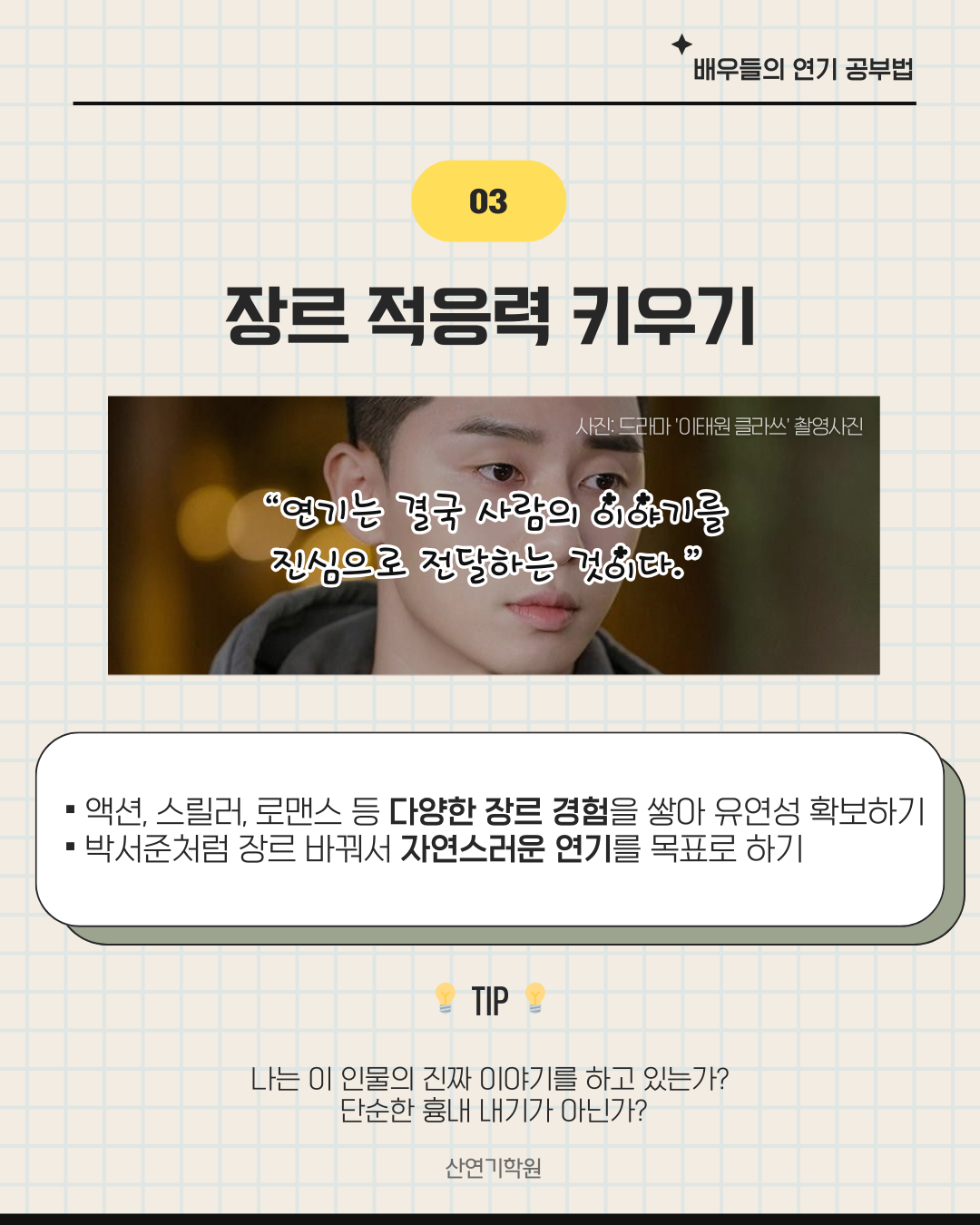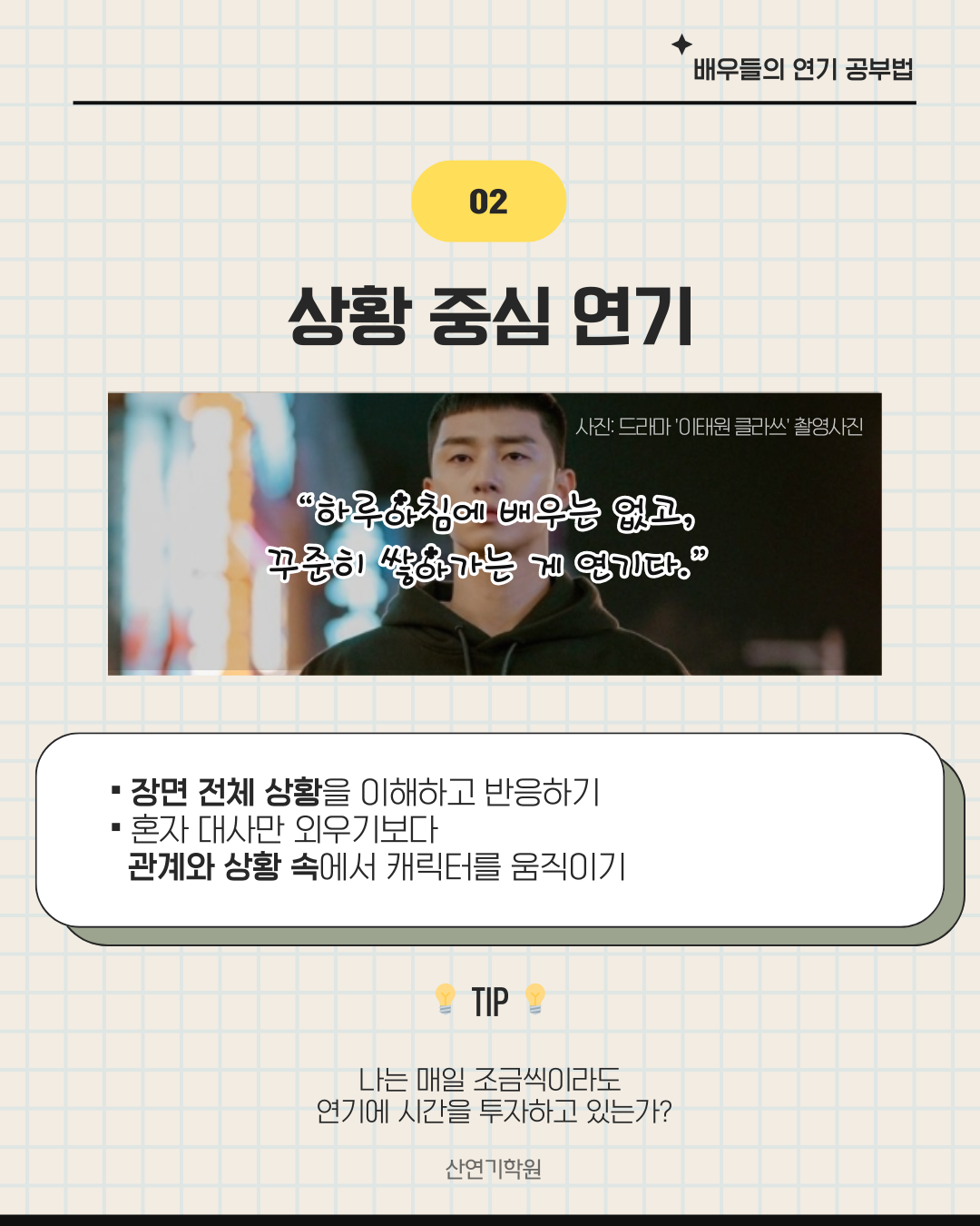 살아보는 연기 준비가 중요하다.